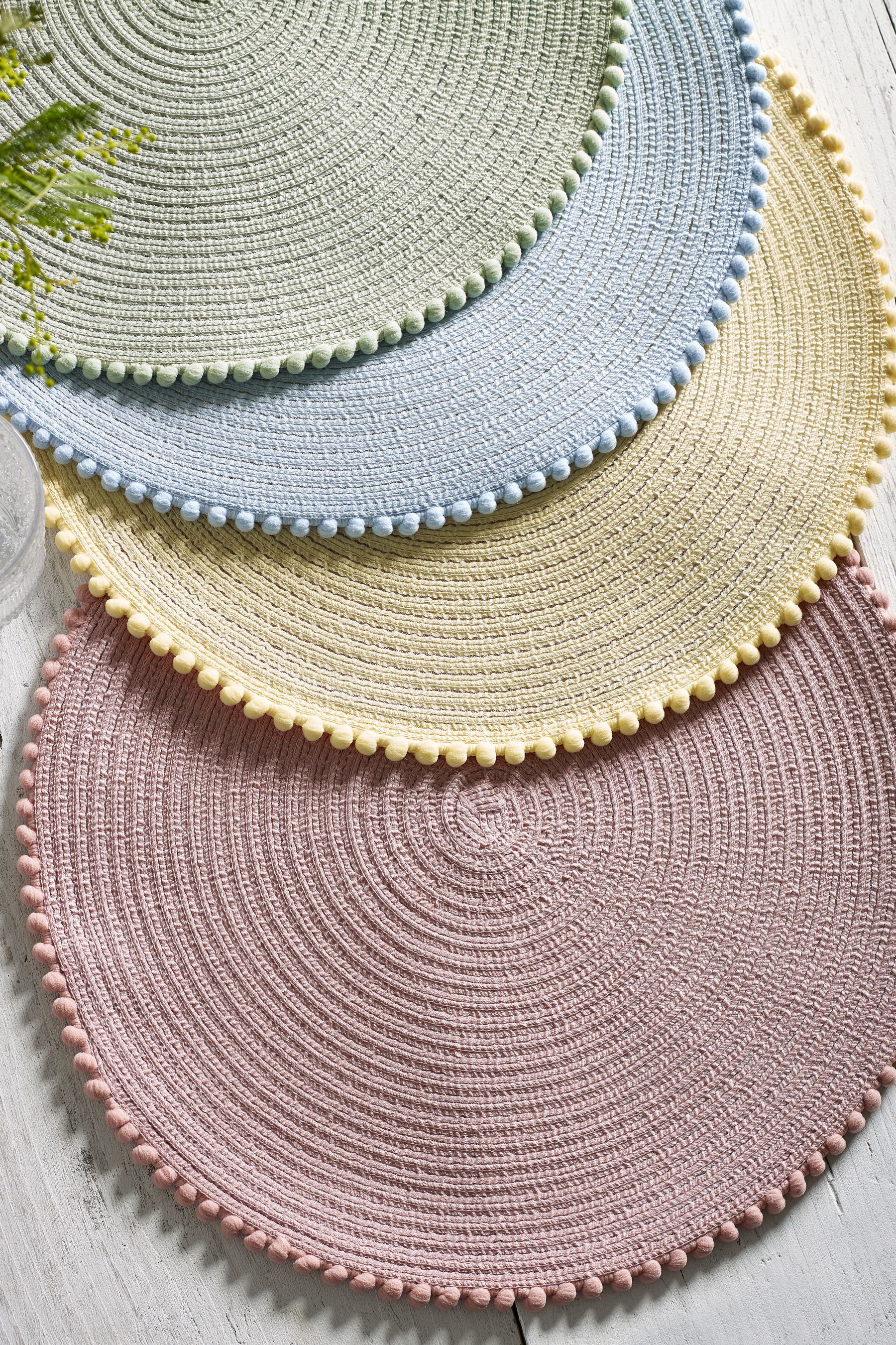 ロンドン直輸入 パステルカラー ボンボン付きプレイスマット4枚セット (布素材)
