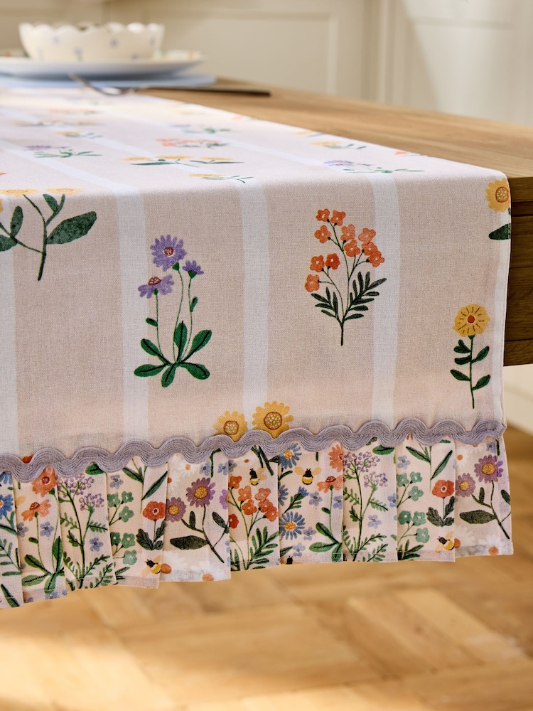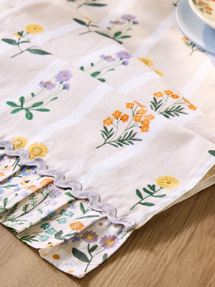 フリルとリボン飾りフラワープリント テーブルランナー