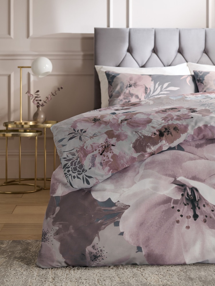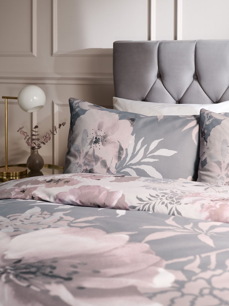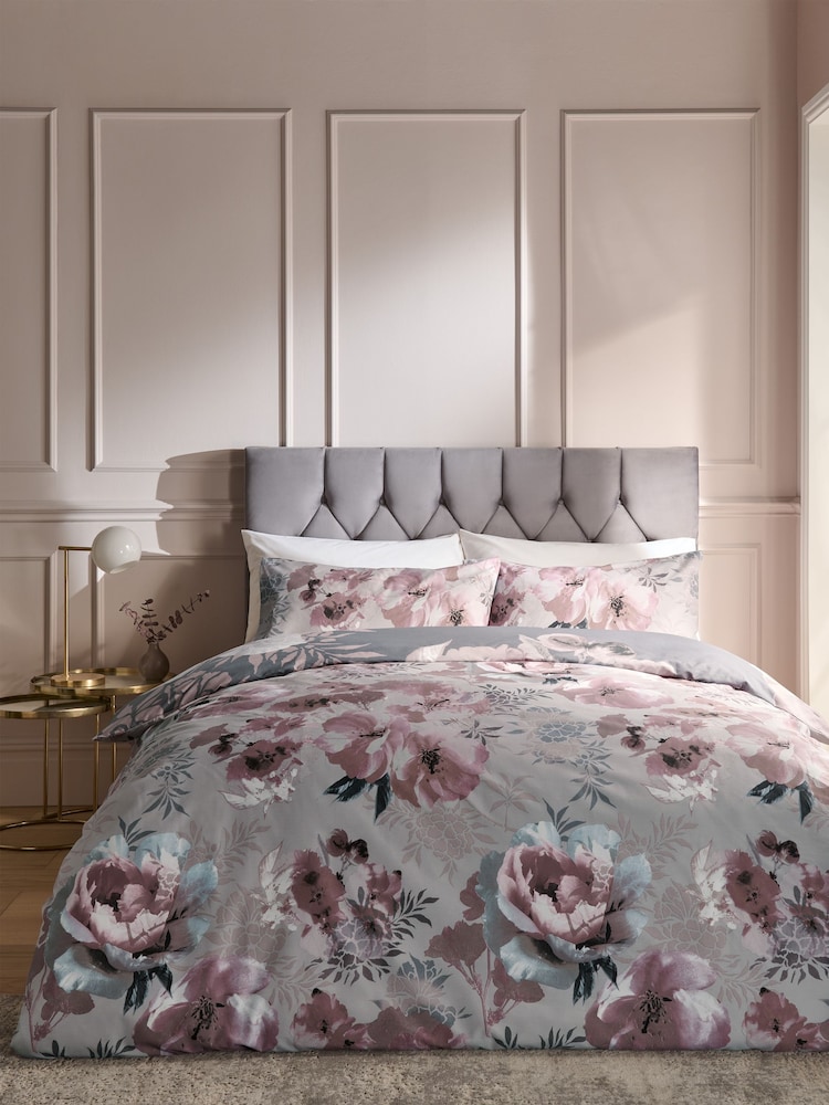 ピンク&グレーフローラル リバーシブル布団カバーセット
